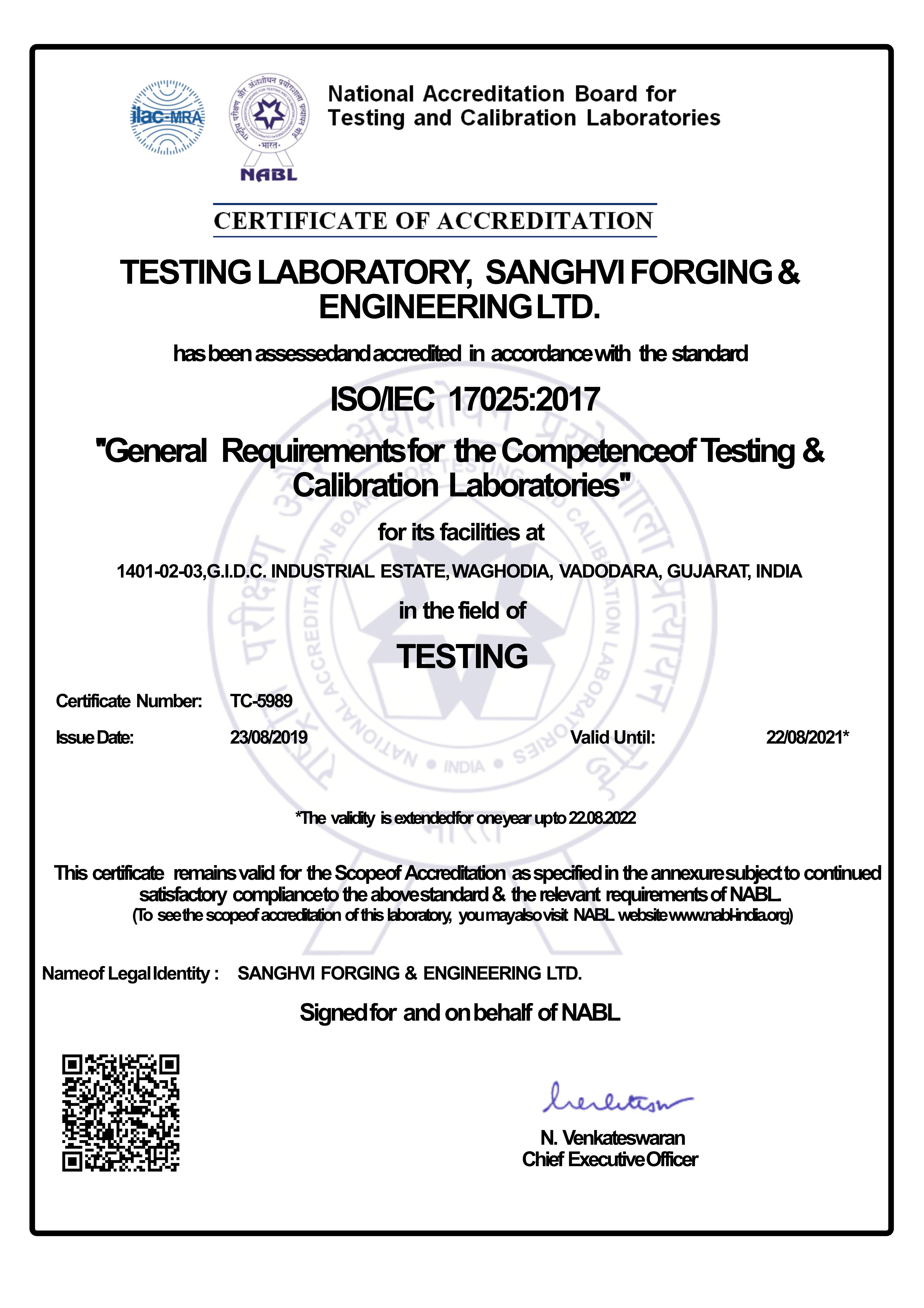 NABL Accreditation Certificate