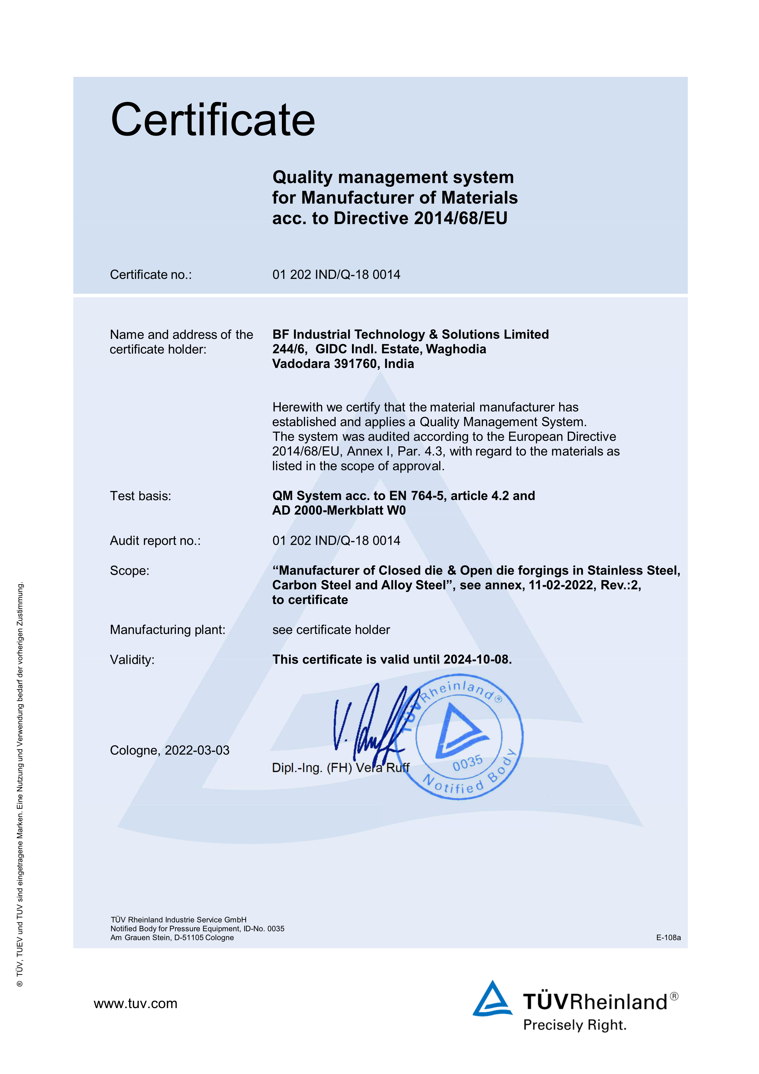 Approval Certificate